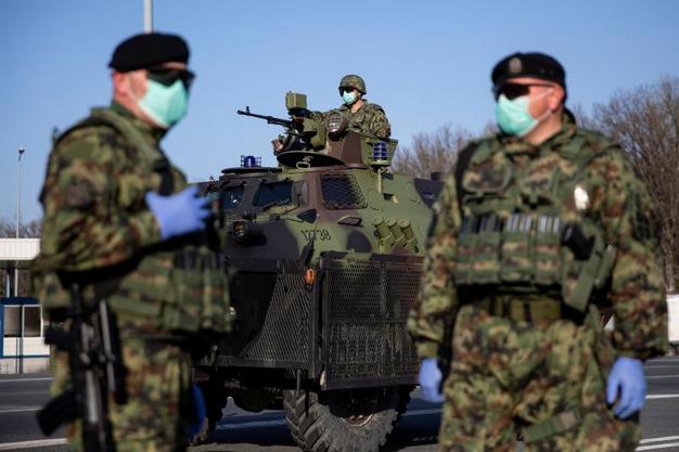 Σέρβοι στρατιώτες φρουρούν στην συνοριακή διέλευση Batrovci της Σερβίας με την Κροατία, τον Μάρτιο του 2020. Marko Djurica / Reuters