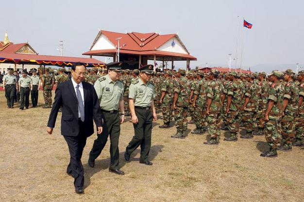 Σύμβουλοι του κινεζικού στρατού περπατούν με αποφοίτους του Ινστιτούτου του Στρατού του Καμπότζης κατά την διάρκεια τελετής αποφοίτησης στο Kampong Speu, στην Καμπότζη, τον Μάρτιο του 2015. Samrang Pring / Reuters