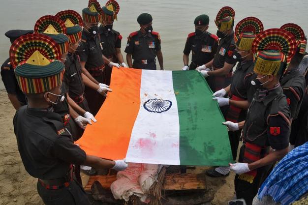 Τελετή αποτέφρωσης Ινδού στρατιώτη που σκοτώθηκε σε σύγκρουση με την Κίνα, στη Maner, στην Ινδία, τον Ιούνιο του 2020. Reuters