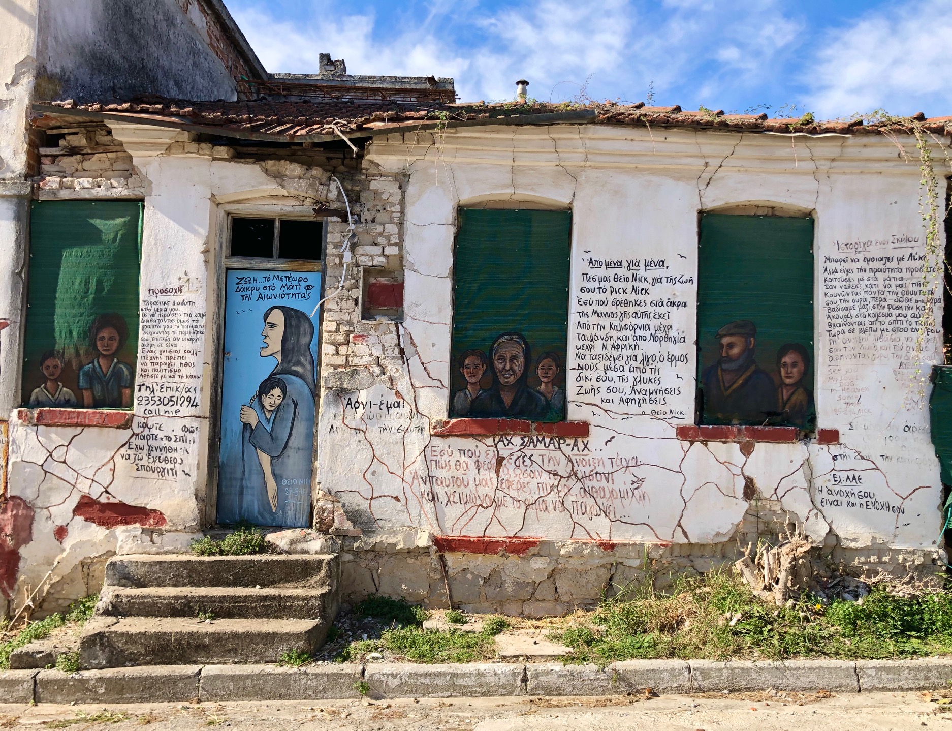 Ο Νίκος Σεμιζίδης ανασύρει από τις αναμνήσεις του τους ηλικιωμένους των παιδικών του χρόνων και αποτυπώνει τις μορφές τους στα παράθυρα των εγκαταλειμμένων σπιτιών όπου ζούσαν κάποτε. Με κάποιους στίχους που συνοδεύουν τη ζωγραφιά, κάνει γνωστή την ιστορία τους στους νεότερους κατοίκους του χωριού, αλλά και στους επισκέπτες.