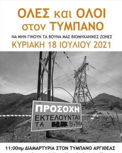 - Η κυβέρνηση να πάρει πίσω όλους τους αντιπεριβαλλοντικούς νόμους που δίνουν γη και ύδωρ στους επιχειρηματικούς ομίλους για την εγκατάσταση αιολικών πάρκων.
