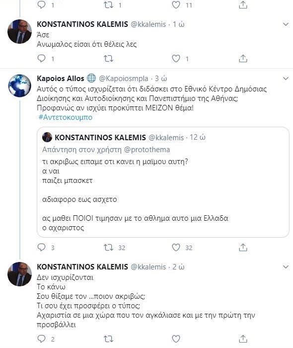 Με χυδαίους χαρακτηρισμούς και εμετικές εκφράσεις, ο Κωνσταντίνος Καλέμης, εμφανιζόμενος σαν στέλεχος και του Εθνικού Κέντρου Δημόσιας Διοίκησης και Αυτοδιοίκησης (με τον πρόεδρο Διονύση Κυριακόπουλο του ΕΚΔΔΑ, ωστόσο, να δηλώνει ότι “ουδέποτε δίδαξε” και “δεν είναι μέλος του παρόντος μητρώου”) …«ξέρασε» όλο τον μισανθρωπισμό του.