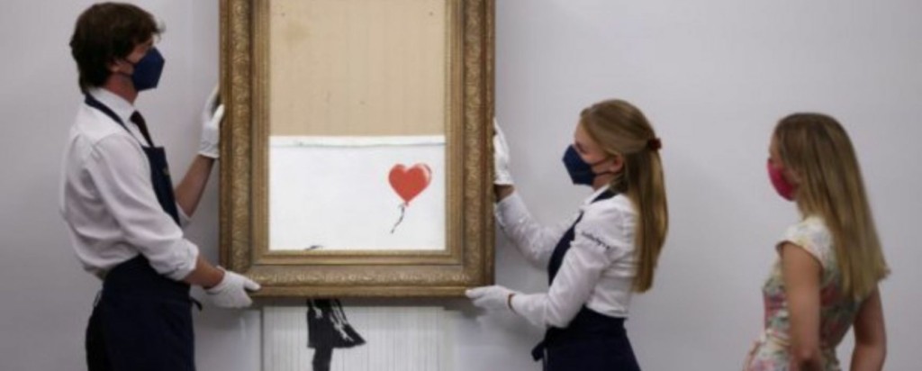 Στην ίδια αίθουσα πριν από τρία χρόνια, οι παρευρισκόμενοι ανατρίχιασαν όταν δευτερόλεπτα μετά την πώλησή του έργου «Το Κορίτσι με το Μπαλόνι», αντί 1.042.000 στερλινών, καταστροφέας εγγράφων που ήταν κρυμμένος στο πλαίσιο του πίνακα κατέστρεψε το μισό κάτω μέρος του που δείχνει ένα κοριτσάκι να κρατά ένα κόκκινο μπαλόνι σε σχήμα καρδιάς.